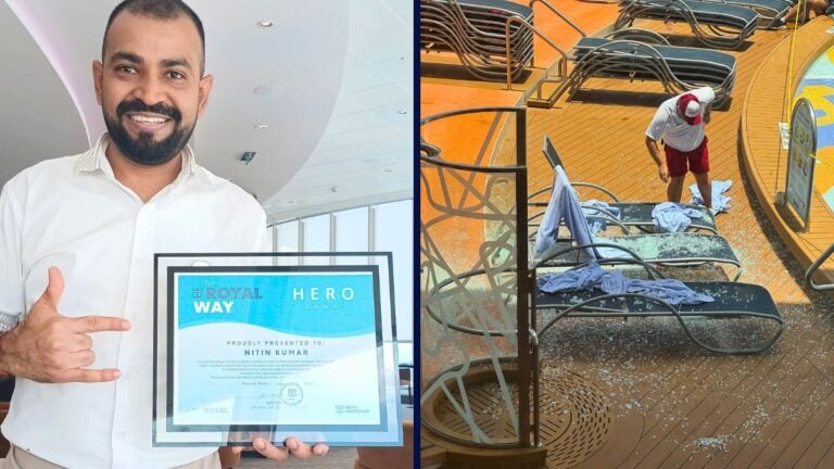 Crew Member Awarded After Saving Guests from Falling Glass