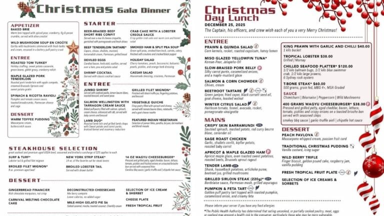 Carnival Cruise Line has released its Christmas Gala Dinner menus, including a new Christmas Lunch offered on ships in Australia.
