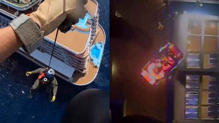 [[{“value”:”Coast Guard crews airlift two men from Carnival Jubilee and Carnival Valor on the same day, with dramatic daytime and nighttime rescue videos released.